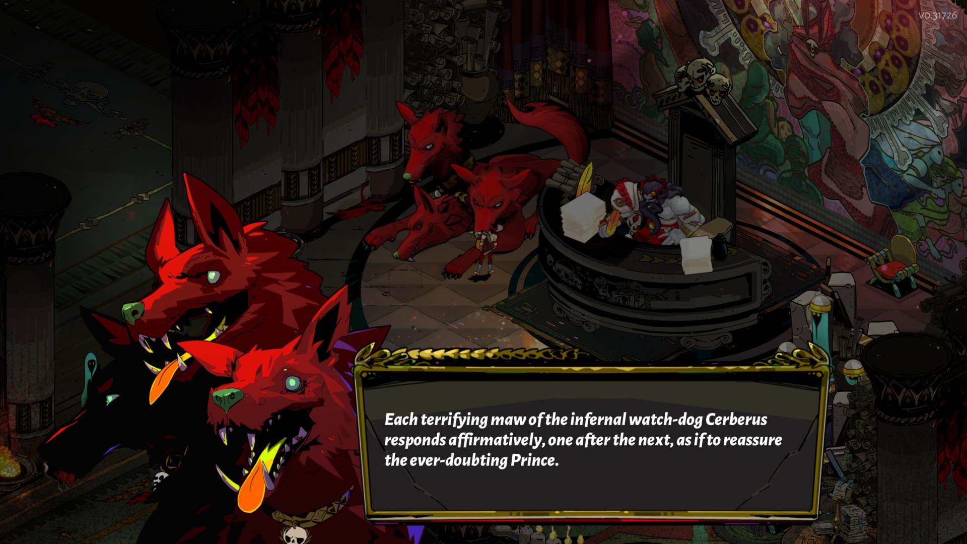 - Great Hall – The initial area which contains the blood pool (where Zagreus spawns after dying), and characters like Hades, Cerberus, Orpheus, Nyx, Meg, and the House Contractor.
