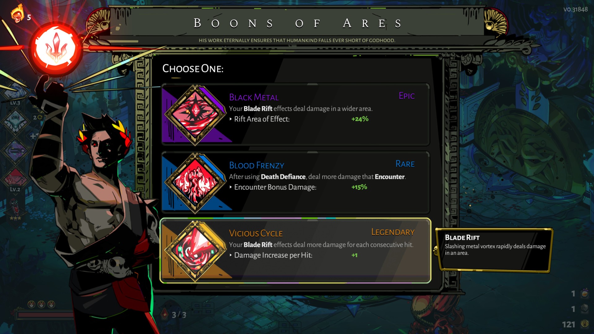 Because of my singular focus on Blade Rift-boosting skills, I tend to neglect anything that has to do with the Doom status. I’ve also tried to avoid some of Ares’ Duo boons which can make Blade Rifts a bit weaker.
