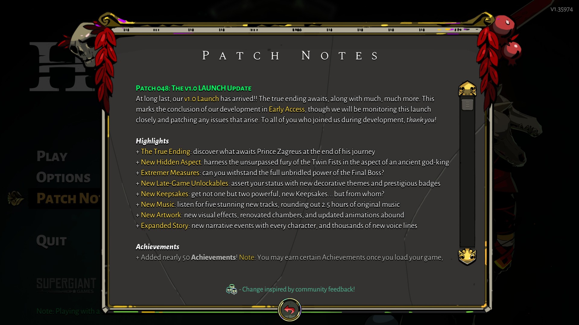 Hades' 1.0 release has a lot of stuff for you to do. You could finally get the true ending, and activate Extreme Measures 4.