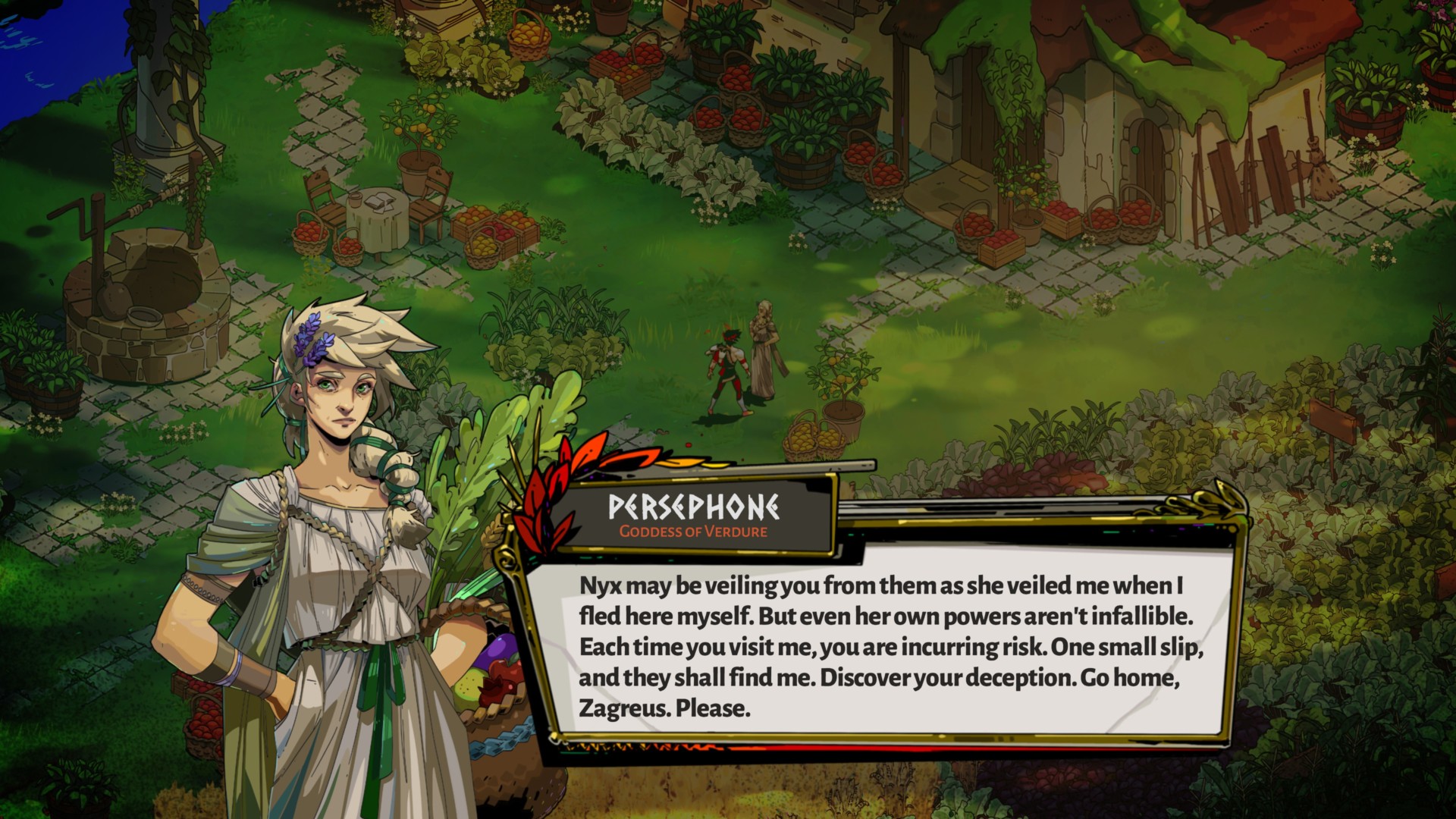 Persephone’s story will be slowly unveiled starting with her flight from Tartarus and the machinations of the Olympians. Zagreus can’t stay in the mortal realm for too long, so you have to do additional clears to learn more.