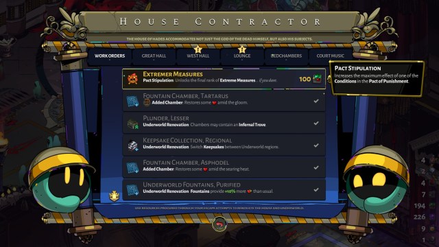 After you’ve seen Hades‘ true ending, complete another run. Then, check the House Contractor. You should be able to purchase the Extremer Measures upgrade for 100 gems.