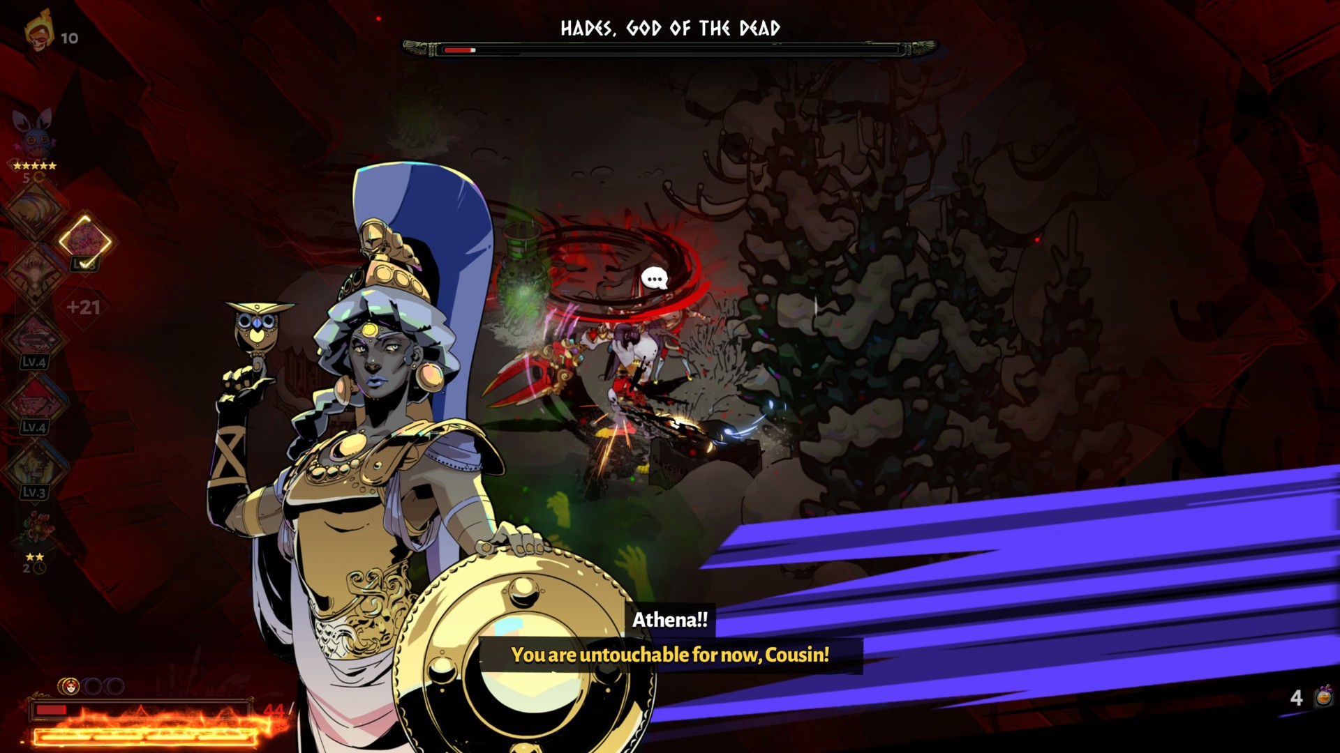 The latter’s deflection capabilities, meanwhile, helped with survivability. I also used Athena’s Call Aid skill so I had something to keep Zagreus alive when he’s in a bind.