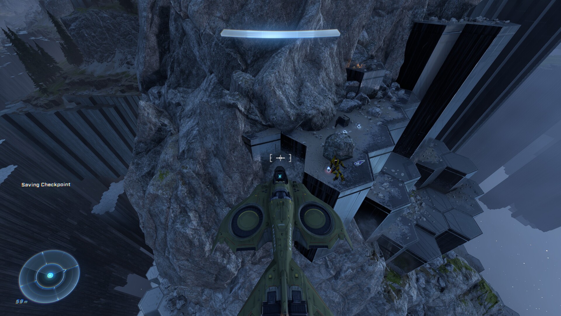 The second skull you can find, Cowbell, is in the second mission: Foundation. If you’re wondering, this is where the Master Chief acquires the Weapon. This hidden Skull is one of the most trickiest locations of Halo Infinite, and will demand some skill with the Grappleshot. It’ll be tough, as you won’t have the second upgrade for it yet.