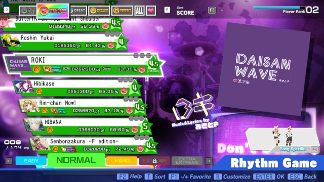 Hatsune Miku: Project DIVA Mega Mix+ delivers an unapologetic arcade-inspired experience. You load up the game, pick a song, and play through. There is very little progression in terms of goals to work towards. You don’t even have to unlock songs as they are all available from the start.