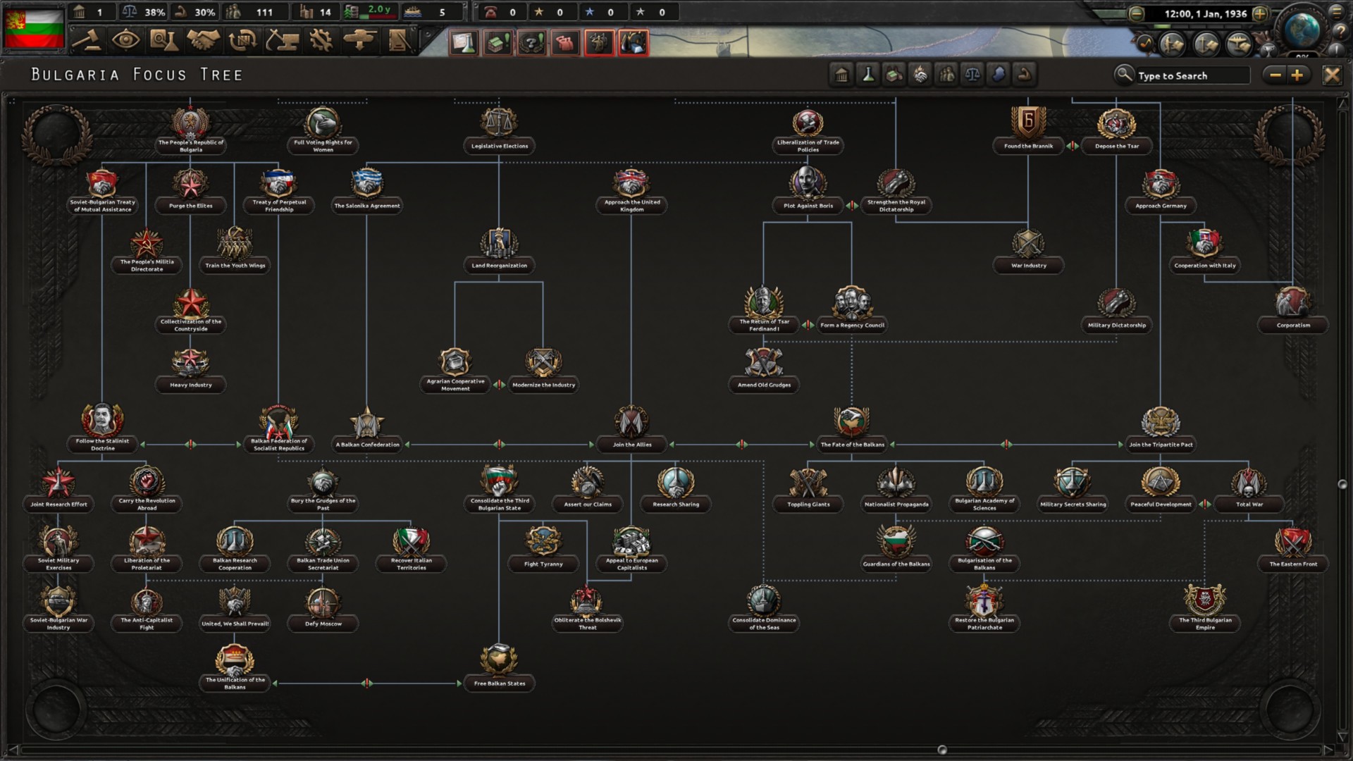 Bulgaria has loads of new National Focus Trees in Hearts of Iron IV: Battle for the Bosporus. Here are the main branches: