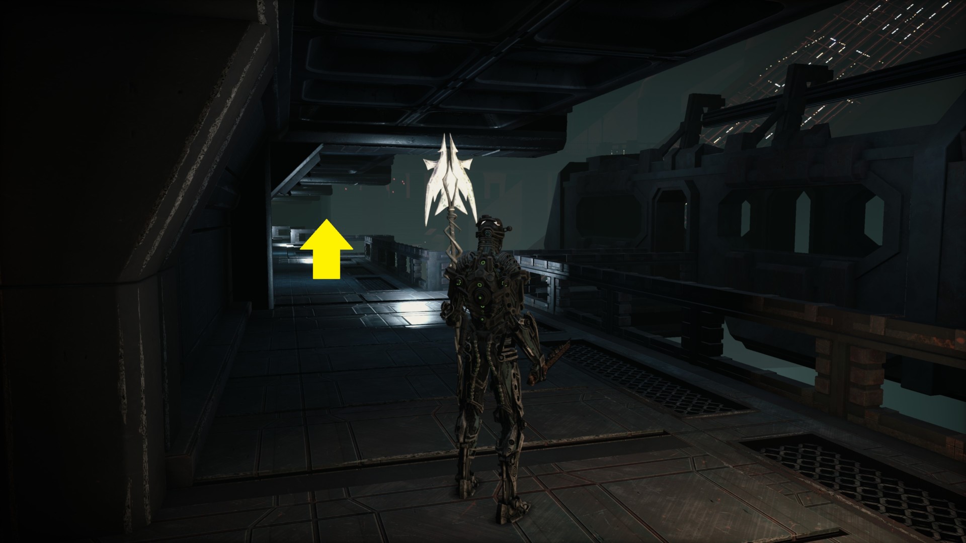 By following those steps, you’ll eventually reach the underside of the Arcology’s elevator (linking back to the passport area from earlier).