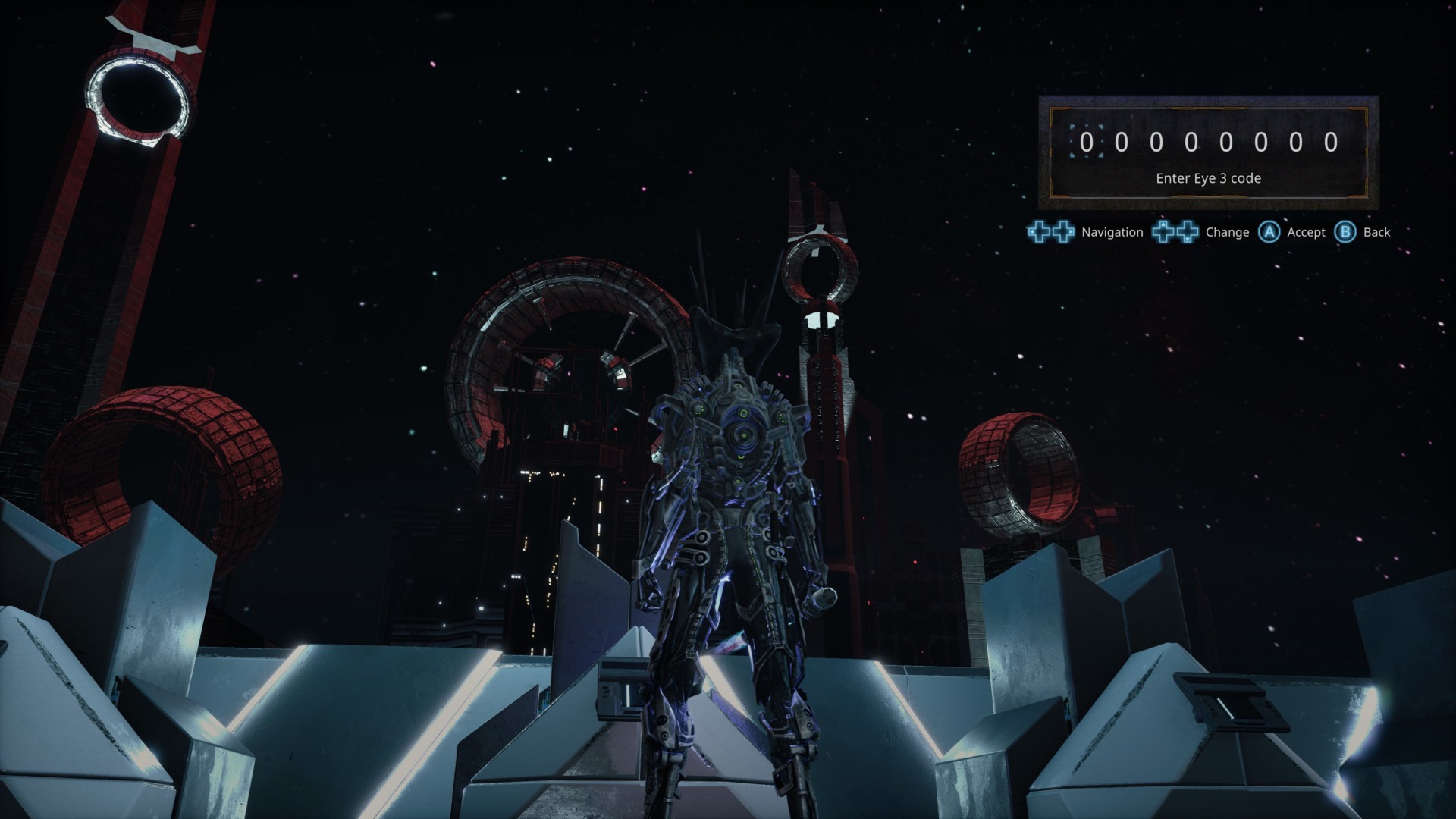 Each Eye Code you’ve found denotes a “pattern” and an eight-digit sequence for an “eye” in order to move the corresponding towers. Now, when you look at each “eye” — heck, you can think of it as Hellpoint‘s Bat-Signal — you’ll see that you can input eight digits too.