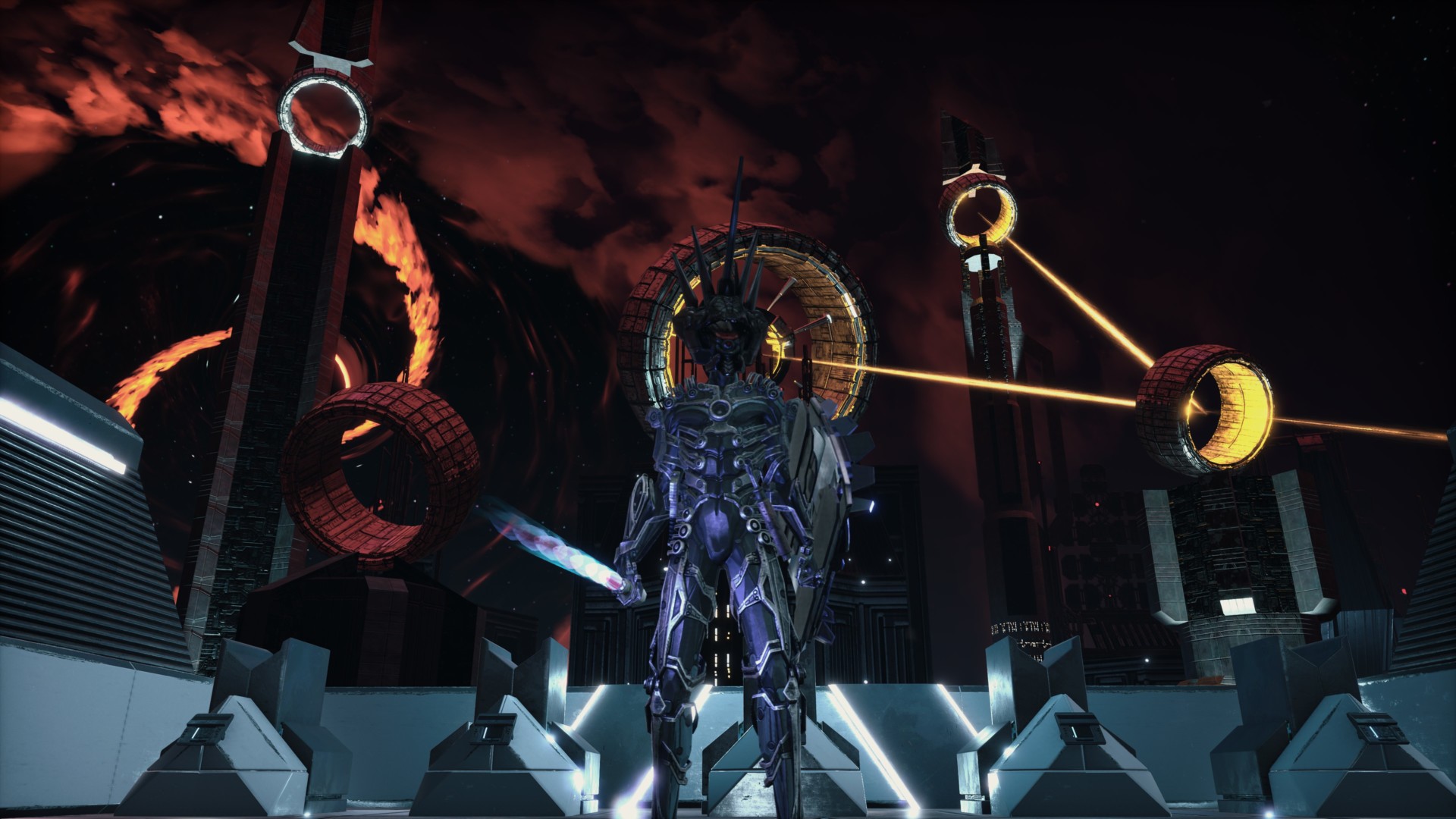 Once the Black Hole Hour occurs, a beam will lance out of the singularity. It will then connect to the other towers that you’ve activated, triangulating on a specific zone in Hellpoint. In turn, these will let you pass through a specific room with a golden barrier.
