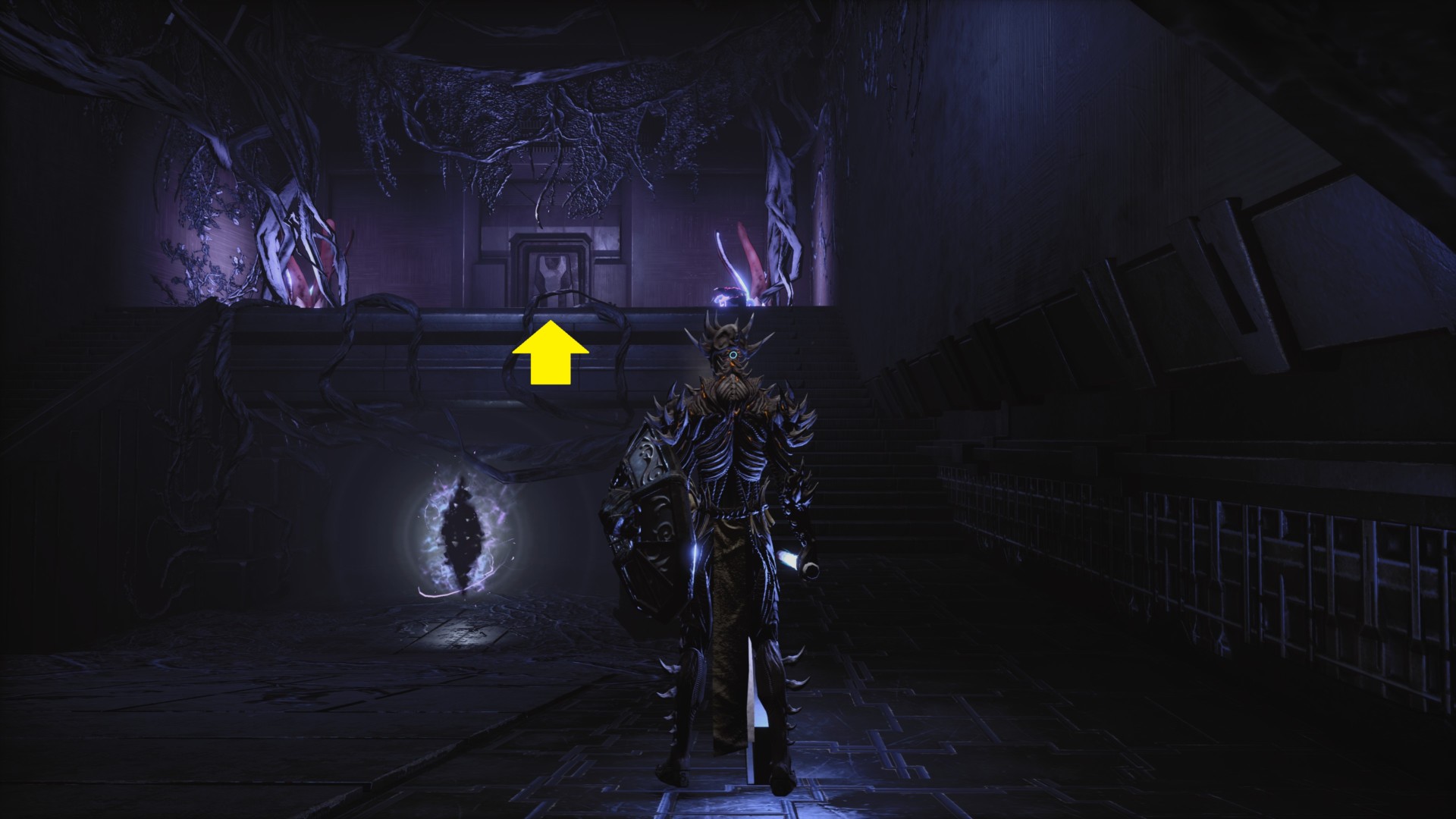 This is the library with the stairs that lead to the boss items trader. Our goal, though, is to head to the passage going outside. Just run past the mobs, follow the winding corridors upwards, and you’ll eventually reach the elevator. Go to the third floor so that you’ll be back at the tower/eye controls area.