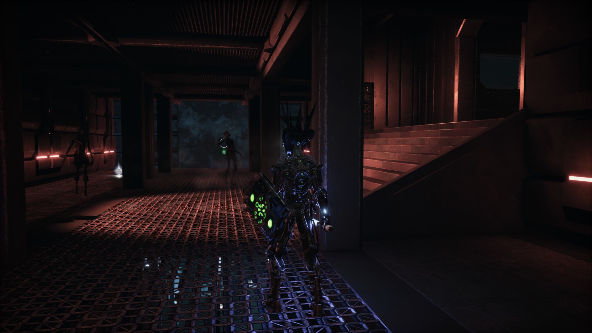 Use the rail to reach the top and you’ll find yourself in a dimly-lit room with a glyph. There’s also a Breach Synchronizer here.