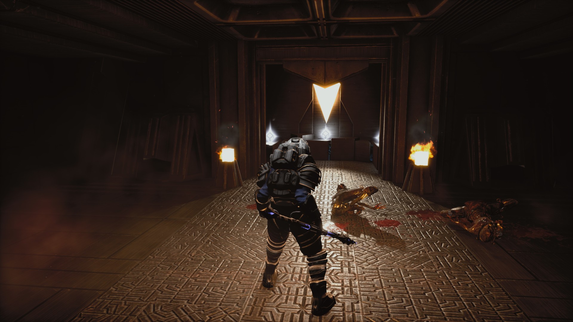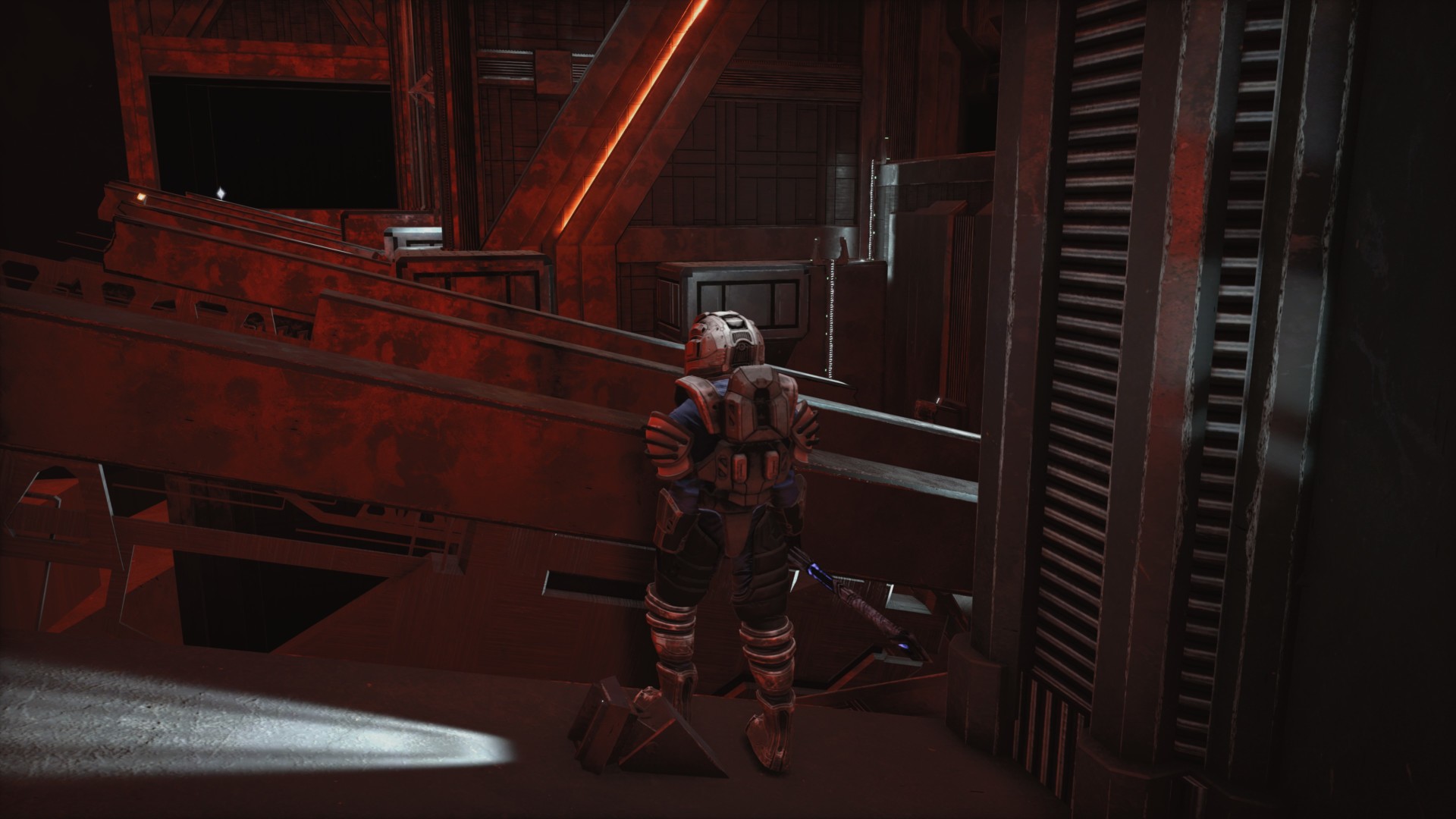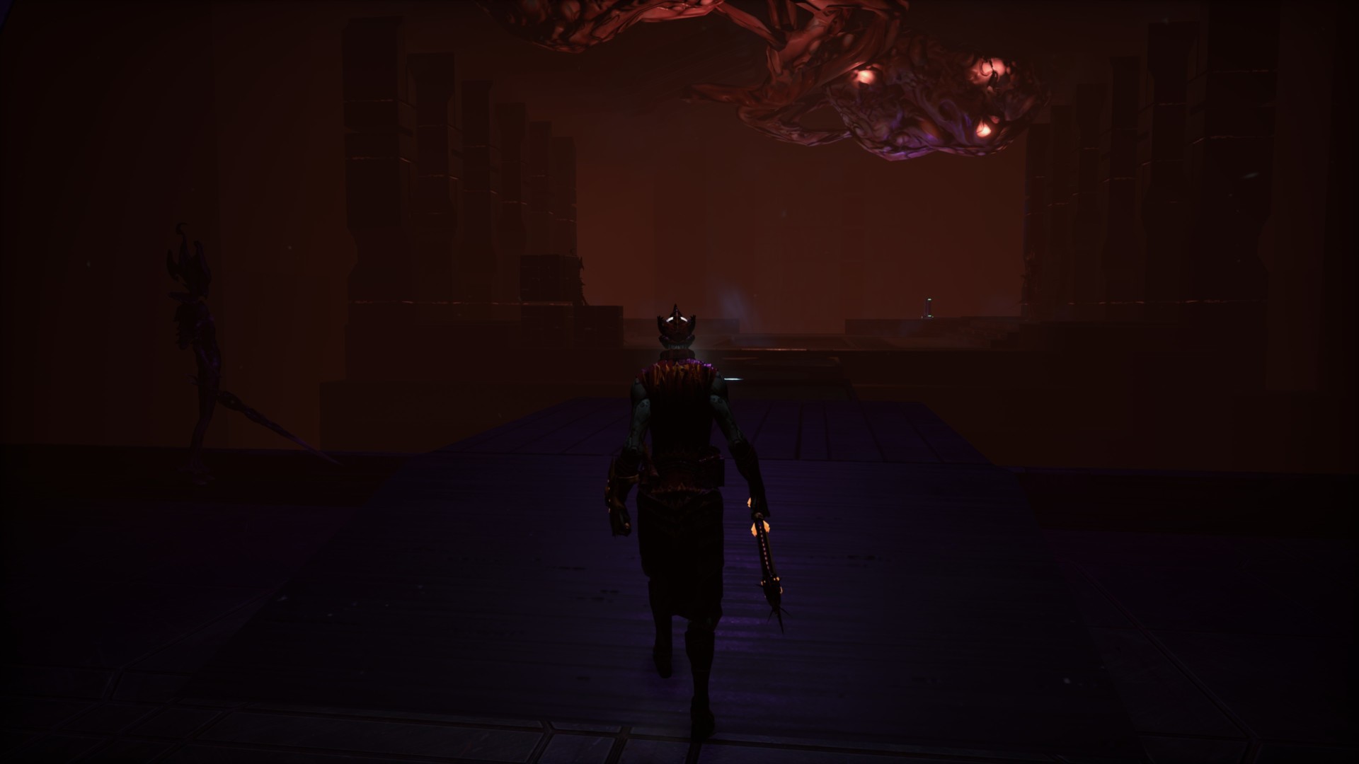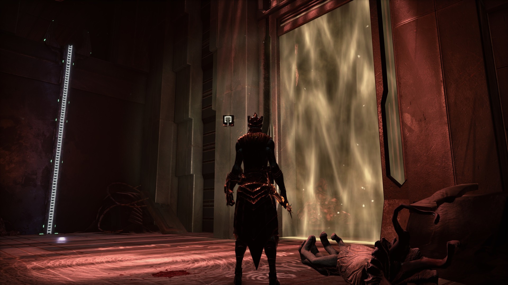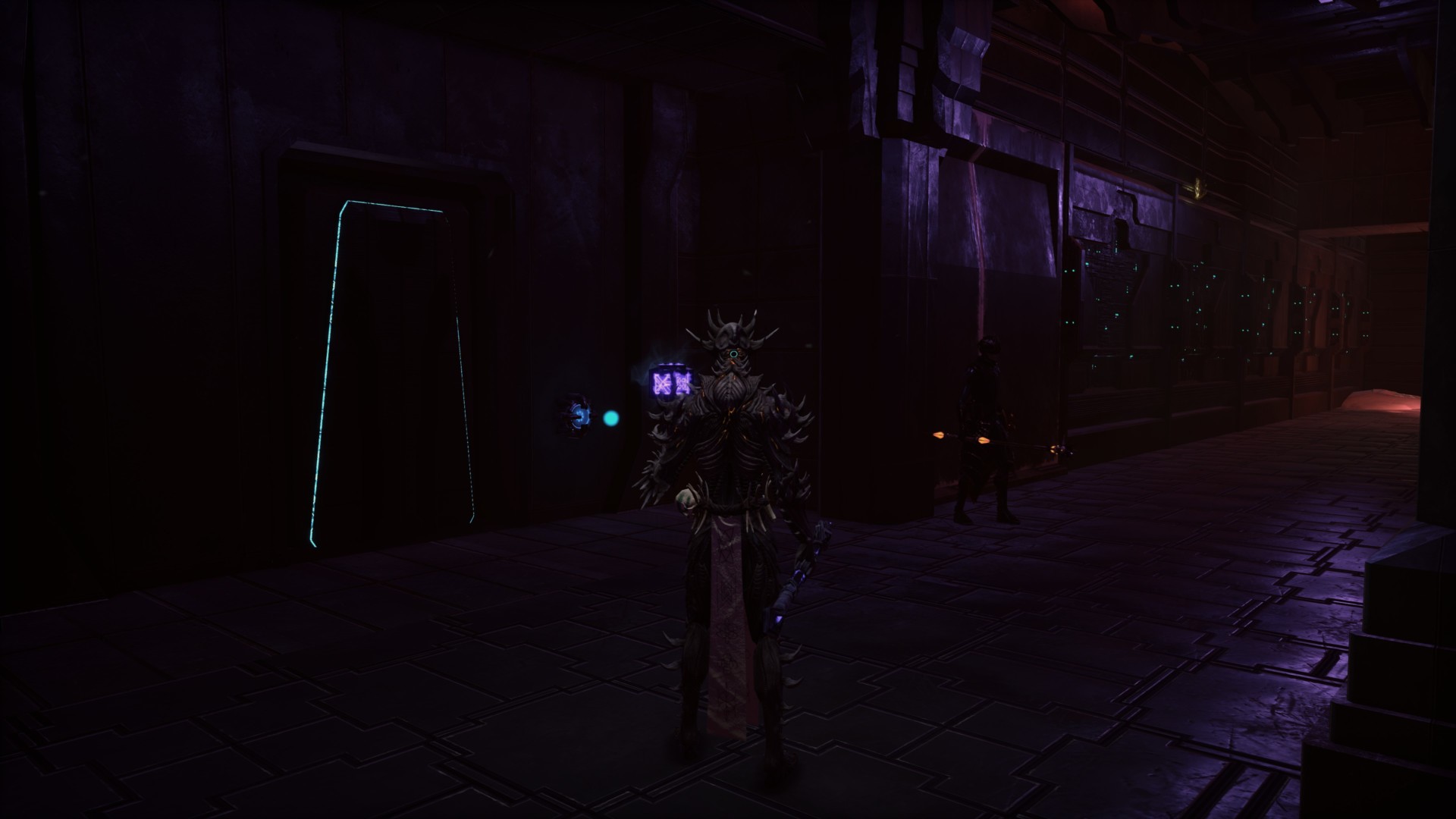Anyway, the doorway leading to this chamber is at the floor below the entranceway/tram area — it’s the door that says: “Danger.” Normally, you won’t be able to open this until much later in your Hellpoint adventure.