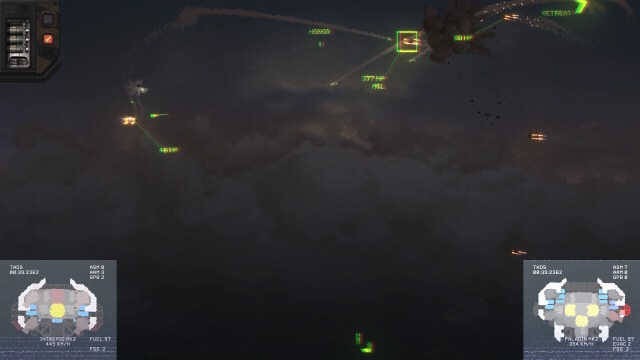 Though it’s not easy to have it easy in HighFleet. Ships have different handling characteristics depending on weight, engines, engine placement, and so on. Any damage has the potential to mess up something important: your engines might overheat; your fuel system might catch fire; you can run out of fuel; and you’ll definitely run out of missiles. The weapon fire is limited by magazine size, and the best idea is to fire only when they’re fully loaded. Meanwhile, both you and your targets are moving hectically on a 2D plane.