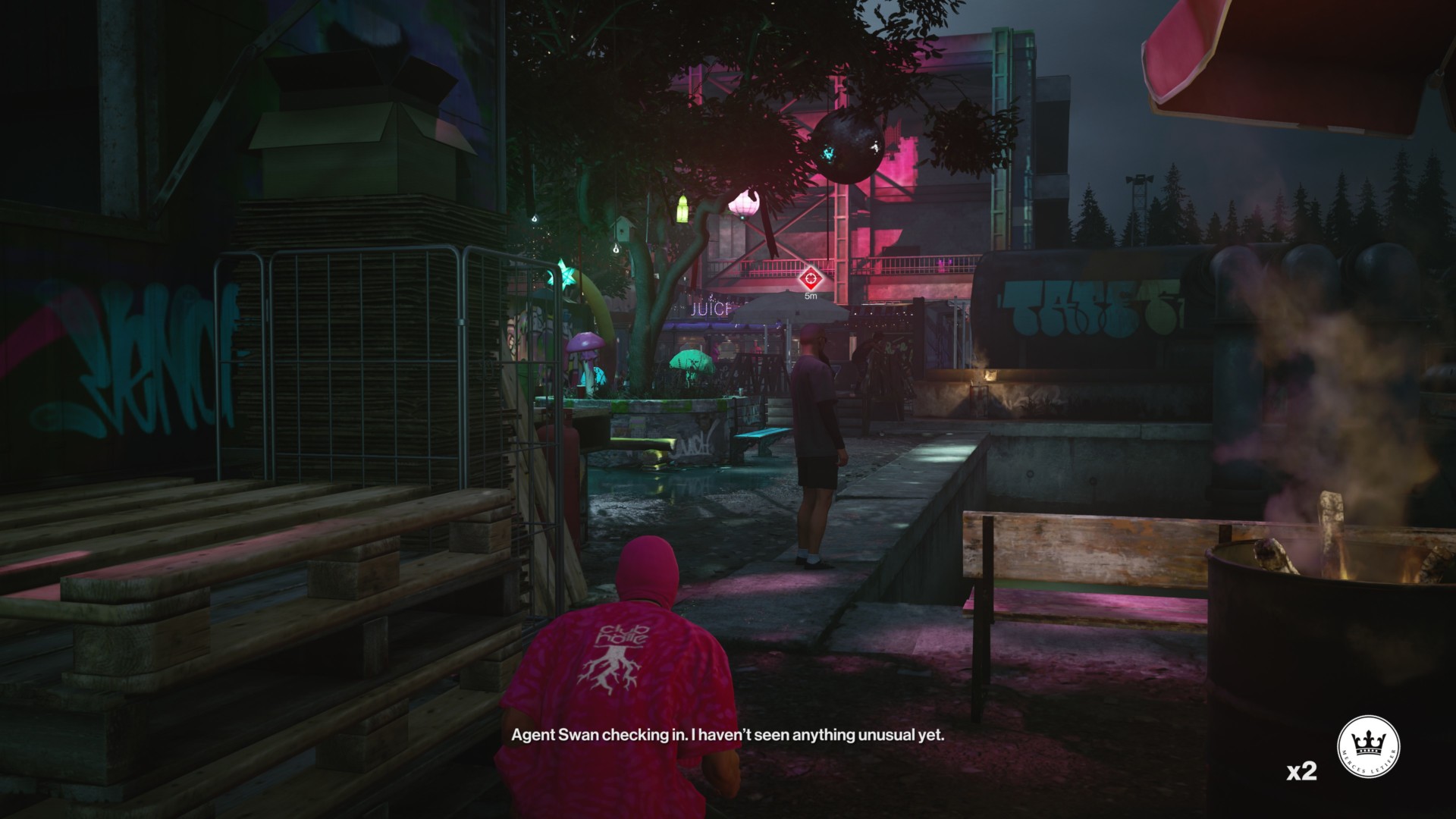 Head outside the shed and it’s very likely that you’ll spot Agent Swan dressed like he’s on vacation.