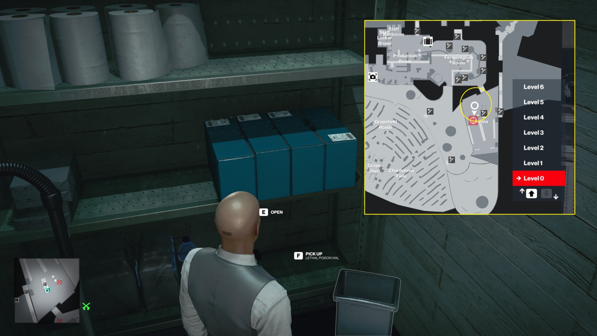 If you’re already dressed as the chief winemaker, head to the barrel room and take the door to your left. This is the ventilation room. There’s a worker here and a guard that you need to distract. Alternatively, you can eliminate both of them, but be very quiet about it so you don’t alert other hostiles.