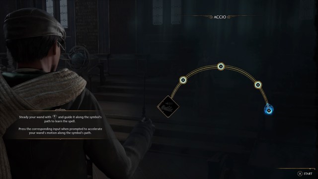 Attend your Charms class if you want to obtain Accio (don’t worry since you can still go to your DADA class afterward since that rewards Levioso). Anyway, the professor will show a casting pattern, which is akin to a semicircle arc. Trace this pattern successfully and you’ll gain access to the ability.