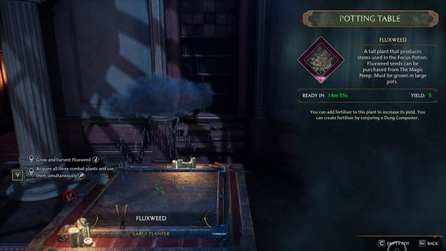 Only then will you be able to place the seeds in the pot. After 15 minutes, you’ll be able to harvest Fluxweed for the Hogwarts Legacy Flipendo assignment.