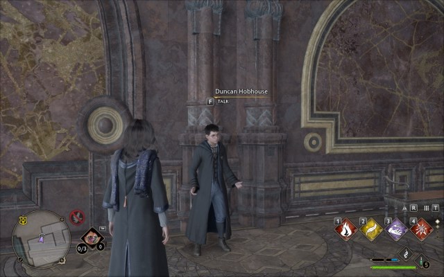The quest starts with Duncan Hobhouse, found at the bottom of the Defense Against The Dark Arts staircase and to the left. He will tell you about how he wants to prove he is brave by proving he obtained a Venomous Tentacula leaf from the hidden Herbology corridor housing scary plants. Naturally he asks you to do it instead, because getting others to do it for you is is indeed very brave.