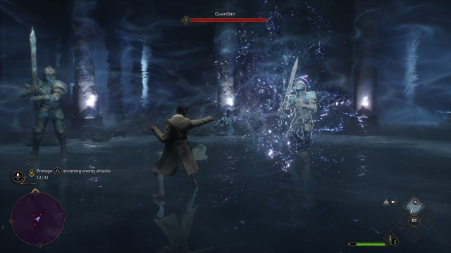 Protego and Stupefy are two spells in Hogwarts Legacy that act as the game’s blocking and countering mechanics respectively. Both of these are learned fairly early in the campaign during the introductory chapter. There, as your character and Professor Fig get trapped in the dark vaults of Gringotts, you’ll find yourself surrounded by Living Armors (i.e., knight constructs). Since you’ll face several of these foes at the same time, you’re prompted to use new combat tactics.
