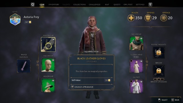 The good thing about Hogwarts Legacy is that you can destroy or sell gear you don’t want anymore, but the appearance is still available to use. The only downside is that you have a limited amount of gear available to hold. So make sure to destroy or sell any pieces of low-level gear that are clogging up your gear spaces.