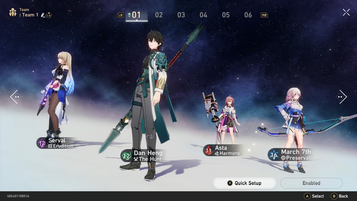 You’ll encounter many different situations as you advance through Honkai: Star Rail, which will require teams of various types. The game allows you to save six custom team formations at once so you can switch quickly when needed. Make sure to make the best use of these slots to keep yourself equipped for any kind of situation that you might face throughout the game.
