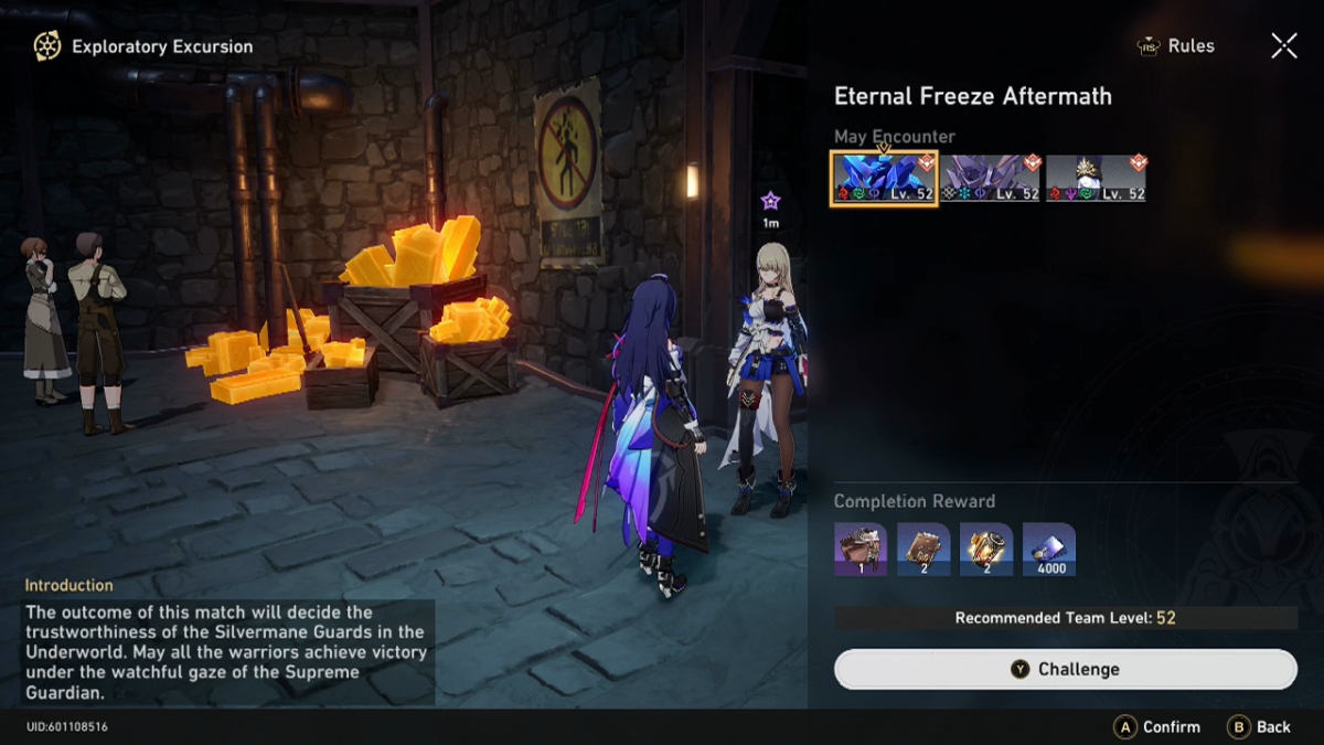 At the clinic, meet with Oleg and then Natasha for tense conversation. Then there is a disruption outside the building. Go outside to learn of a new threat. Then meet with Serval. This kicks off the Eternal Freeze Aftermath challenge, where you will need to defeat a few enemies at level 52.
