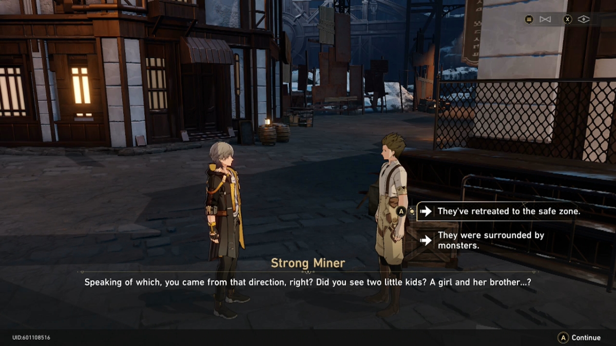 After you rescue the youths and have a conversation with Gepard, head forward and find Strong Miner standing near a building. Talk to him and fill him in on recent events. Then push past him and continue down the alley for the mission’s boss battle.