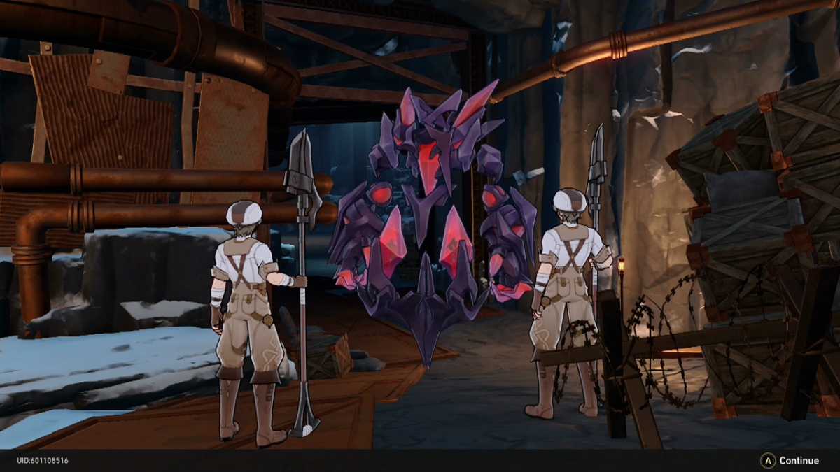 Just past a helpfully placed Sustenance Anchor, you’ll meet some miners and Gepard. Then you battle an enemy group that includes Blaze Out of Space and two Incineration Shadewalkers. Between them, they are weakest to ice and wind damage. Watch out for fire-based area attacks and be ready to heal as required. The nearby anchor means that even a loss doesn’t set you back much.