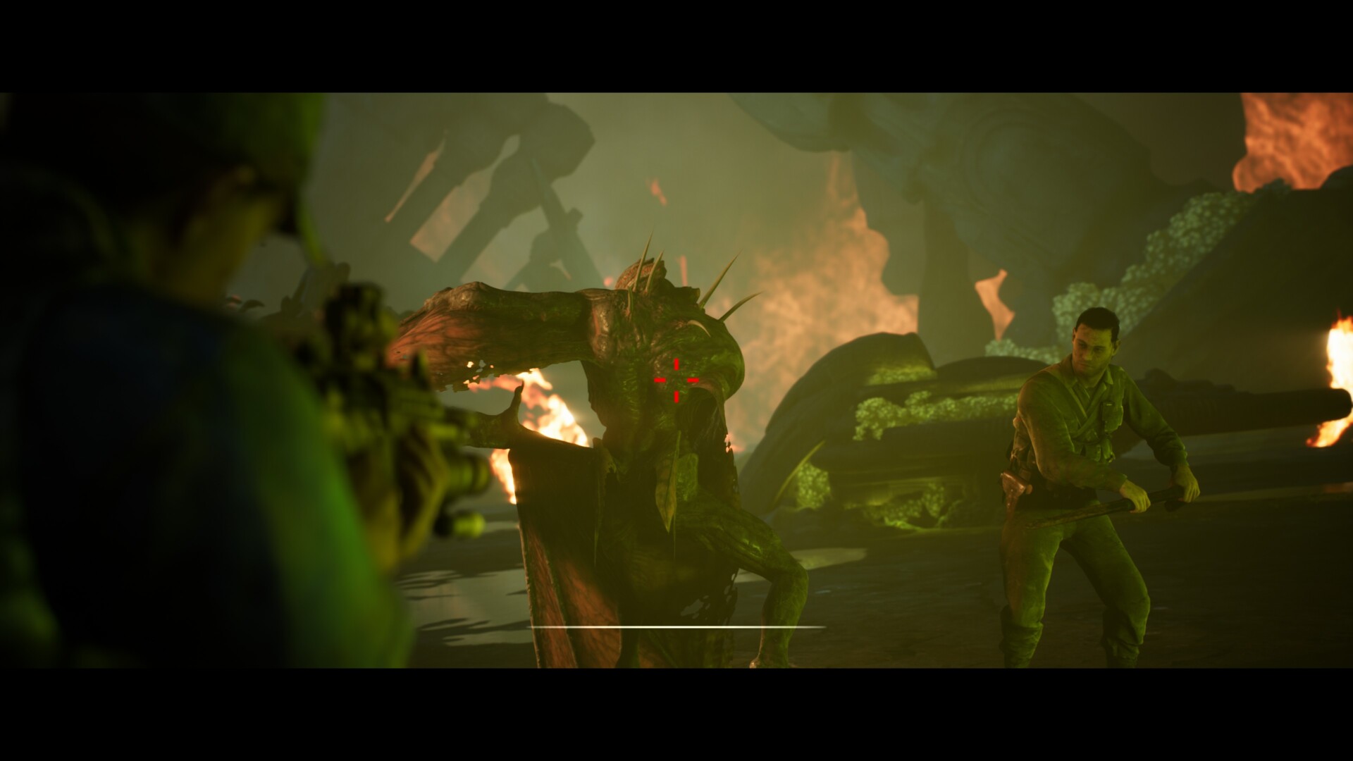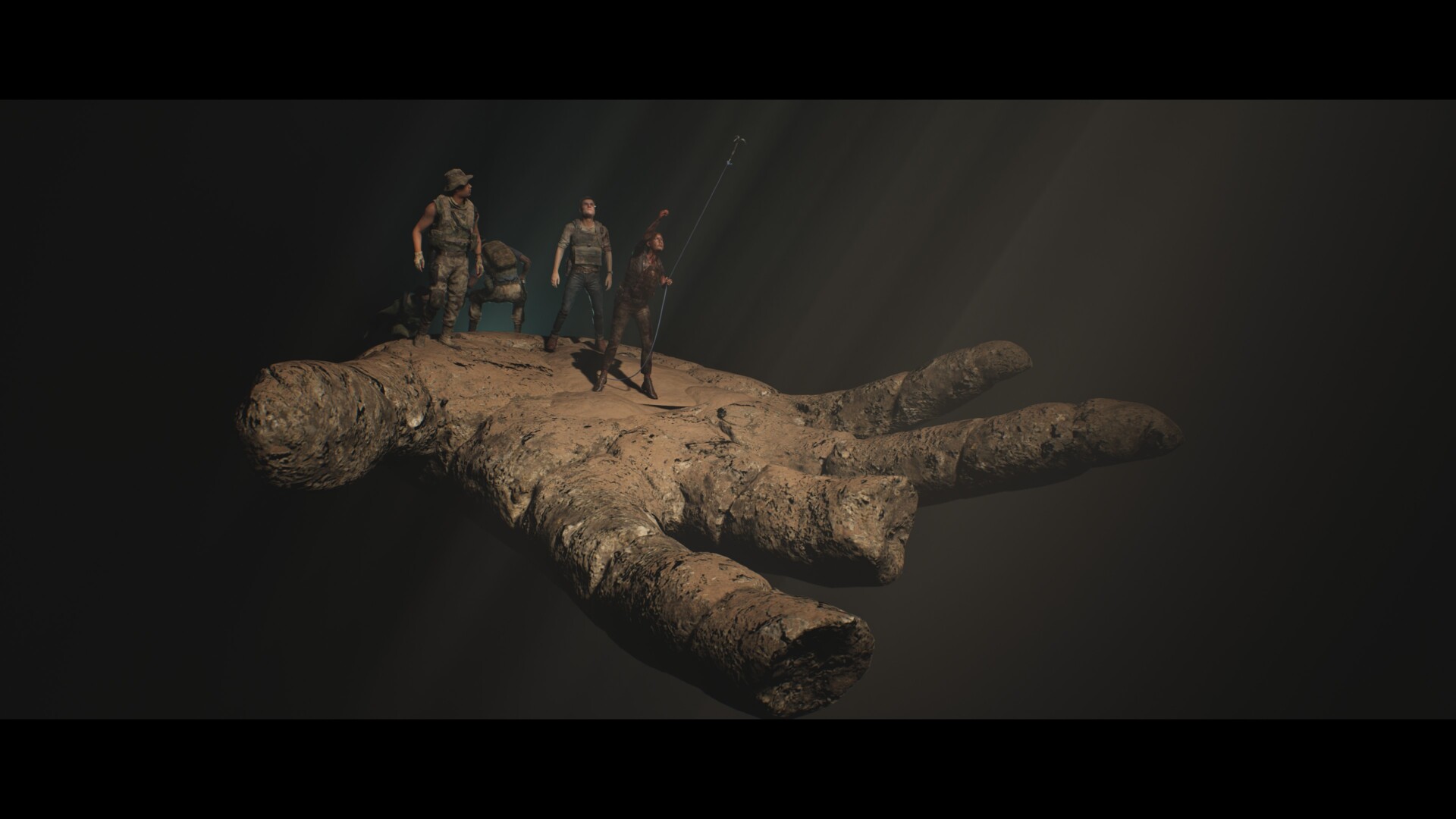 Let’s take a breather because, assuming you did everything correctly, everyone will survive your House of Ashes campaign (at least up to this point). You’ll see them climbing on a giant hand statue to reach the surface.