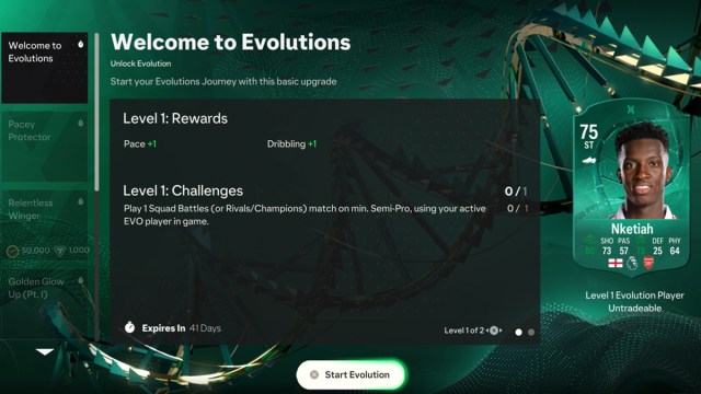 After you enter the Evolutions screen, you will be greeted with a few different Evolutions that you can do. Some of these are free, and some of these are paid by either using coins or FC Points. You can also see the requirements to be able to use a player on the right-hand side of the screen, as well as check how the player upgrades during the course of the Evolution you select. Any player can be used in an Evolution, whether it’s a normal or a special card. By tabbing through the Evolutions and their tiers of upgrade, you can also see the challenges you need to complete to be able to get that stage of the Evolution in EA Sports FC 24.