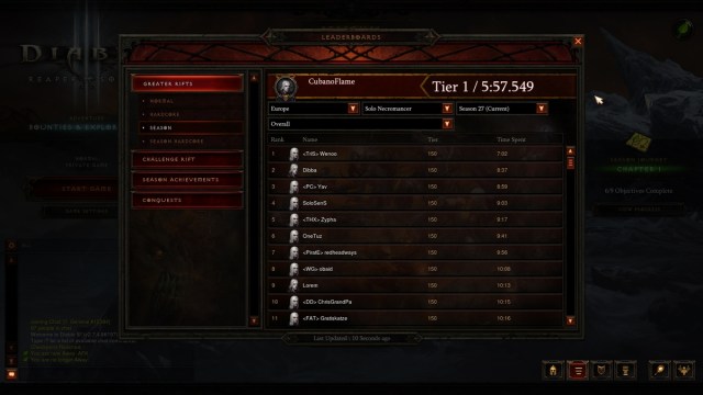Leaderboards let you track progress against other players, and Diablo III has several leaderboards tracking both Seasonal and non-Seasonal heroes. There are separate Seasonal leaderboards for: