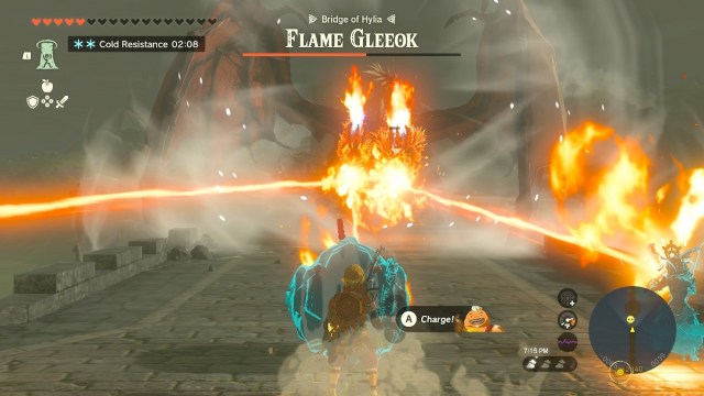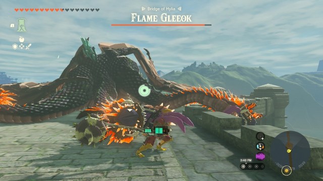 There are three Flame Gleeoks you can come across throughout Hyrule. The one I tried to tackle was on the Bridge of Hylia, right in the center, waiting for passing travelers. You can also find one on Spectacle Rock in the Gerudo Highlands, and another in the Ancient Columns in the Tabantha Frontier. If you’re interested in the other Gleeok types, we’ve covered how to beat the Thunder Gleeok and the Frost Gleeok.