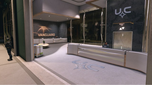 Speak to Commander Jon Tuala and inquire about joining the Vanguard. They will explain the benefits, the need for new Vanguard personnel, and explain the requirements. Once you agree, head downstairs via elevator and complete the Vanguard organization introduction and flight simulator trial. Note that you’ll need to clear any bounty before you can begin the intro.