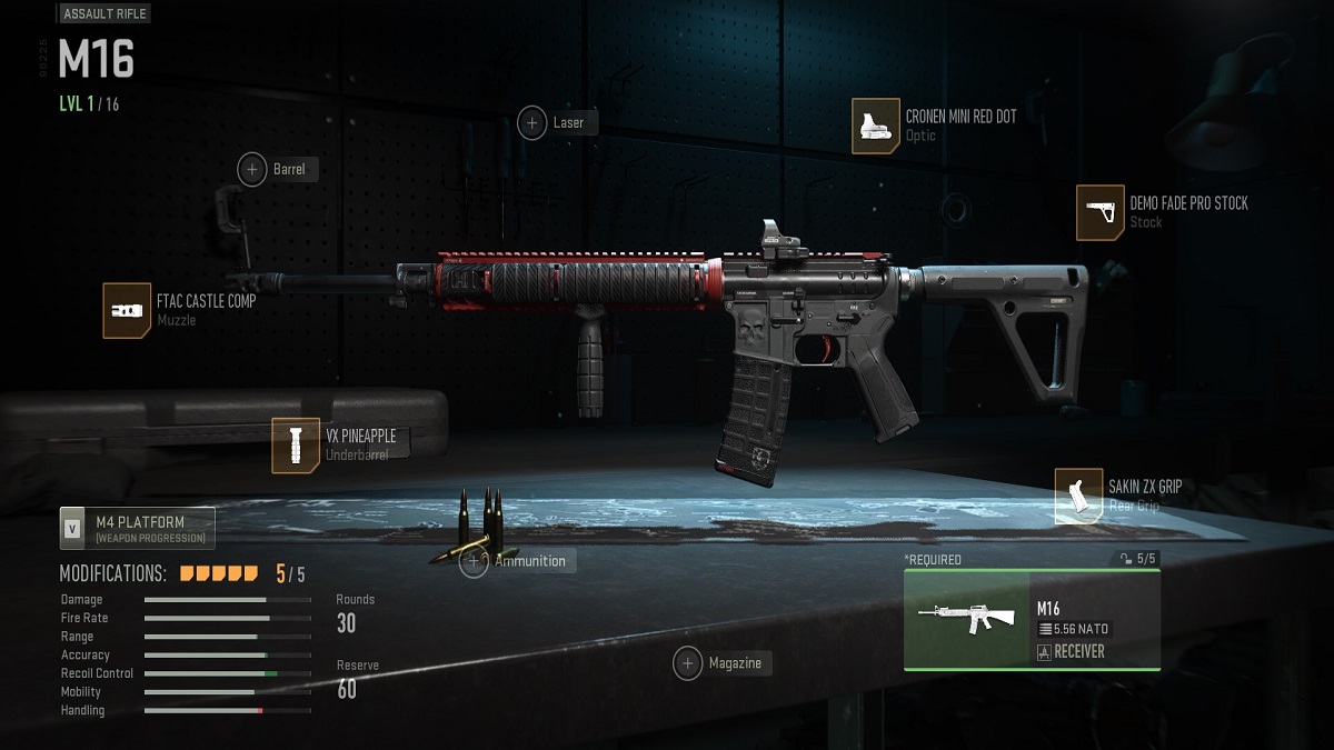 Every Call of Duty fan should recognize the M16 and will likely know the sound of the three-round burst ringing out across the map. This classic weapon is back for Modern Warfare 2, along with some other familiar assault rifles such as the M4. The key stats you want to improve when it comes to the M16 is the recoil and mobility, so that’s the focus of this build.