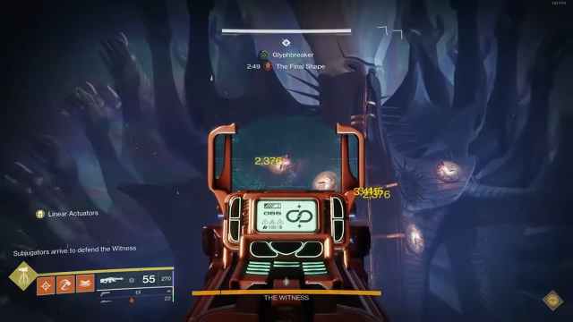 For the 5th encounter of the raid, you must finally confront The Witness and take them down. The encounter starts with players running around shooting the floating hands that you’ve been dealing with the entire raid. Except this time, you’ll actually destroy them. Destroying them gives you the Glyphbreaker buff, allowing you to shoot one of the glyphs on The Witness’s chest.