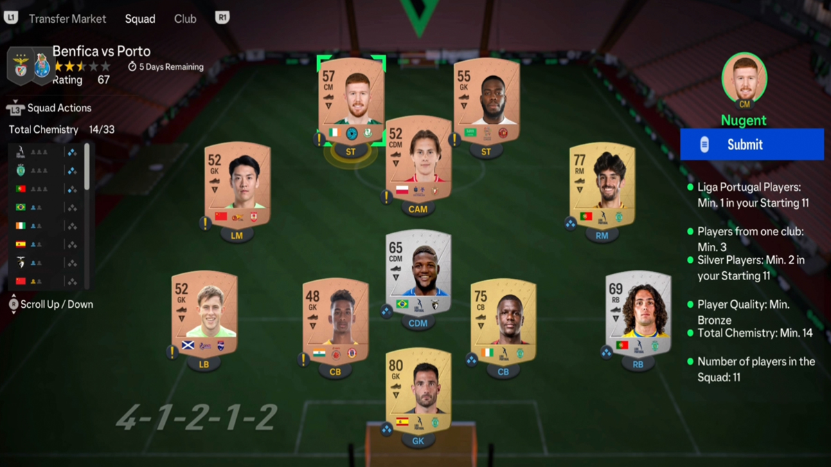 This SBC in the Marquee Matchups group for this week requires you to have a single Liga Portugal player in the Starting 11, a minimum of three players from one club, and a minimum of two silver players. I personally when with a majority in Liga Portugal to make getting the chemistry easier, and I had a few different players from this league in my club, but you could probably do it using a different league if you wanted.