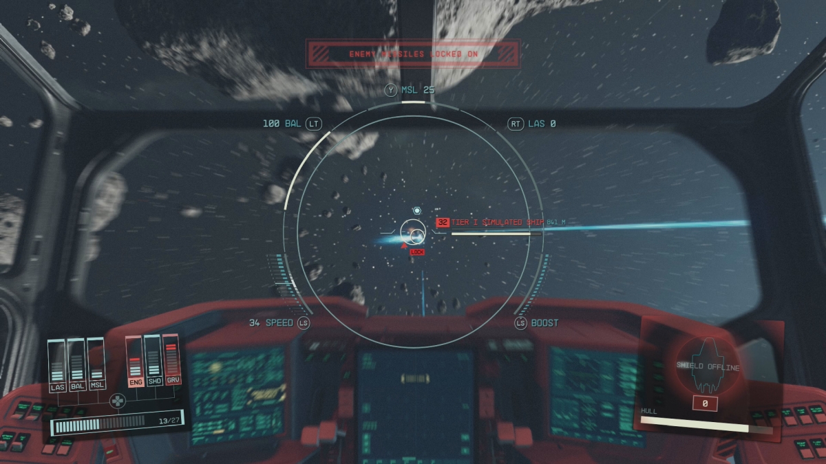 Ride the elevator to the upper floor. Then follow the corridor along the upper platform to meet with Exam Proctor Samuelson. He outlines what you need to do to pass the test, which is mandatory. Essentially, you must survive three rounds of space combat.