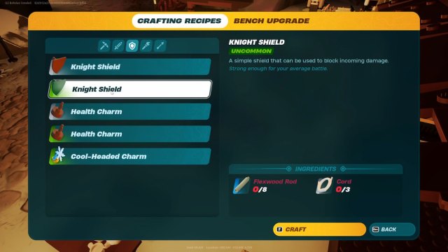 To upgrade a Knight Shield in LEGO Fortnite, you will need to upgrade your crafting bench to the same level. For example, crafting an Epic Knight Shield will require you to upgrade your Crafting Bench to the Epic level as well. Here are all the recipes for all the Crafting Bench levels.