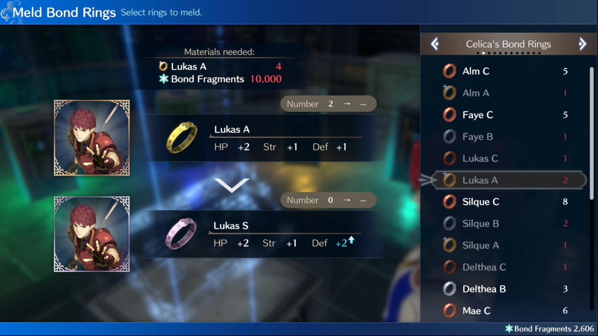 Each character can equip one Emblem ring at a time. They can exchange rings freely outside of combat. However, some rings are perfect for a particular character. You don’t want to pass them around more than necessary. Instead, create Bond rings to fill in any gaps. Bond rings at S rank sometimes even grant special abilities.