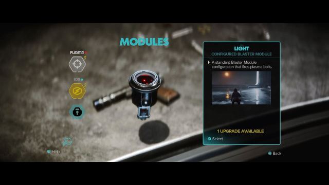 Once you have the Ion Module unlocked on your Blaster, you can switch your shot type mid-combat. The first Ion Module you get fires a burst of three shots. To disable a blue shield, switch to the Ion Blaster and try to land all three shots on the blue shield.