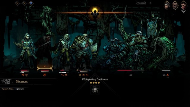 Beyond these mechanics, the Dreaming General has one other move, ‘Unsettling Whisper’ a simple single-target attack that adds Stress to the victim, with a high chance to add it to the rest of the party as well. He also has a huge health pool, starting out with a meaty 205 health to work through.