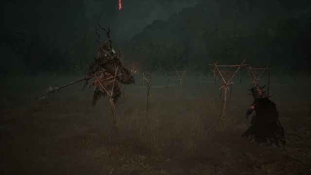 Immediately, The Hushed Saint will charge at you with his horse. Don’t ever consider blocking or parrying, just dodge last second to evade all damage. The boss will then reemerge from the bog and will circle the arena. With a throw of his halberd, he’ll leap from the horse into combat. Again, simply dodge the weapon and charge toward the boss.