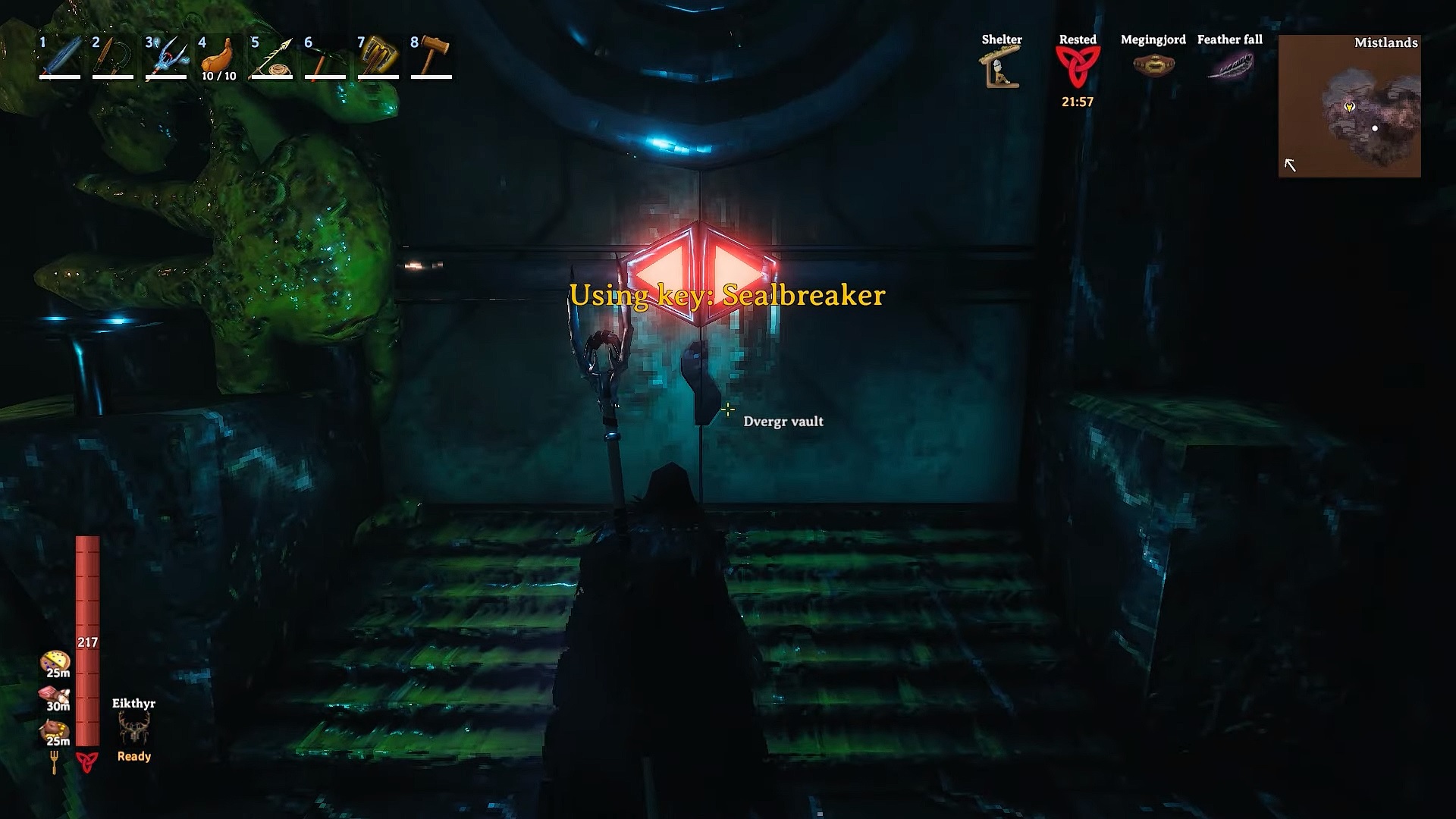 Once this vile beast has been felled, you are rewarded with her head as a trophy to hang with the rest. Once her head has been hung, her power can be activated. The Queen’s power increases mining speed and Eitr regeneration.