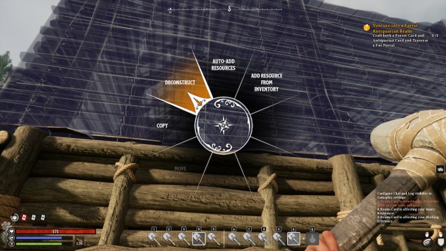 Unfortunately, Nightingale doesn’t support instant deconstruction like in other games with similar building systems. You can’t enter a deconstruction mode and instantly destroy items that you want to get rid of.