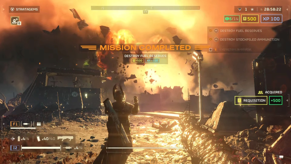 I’ve noticed the grenade needs to land quite close to the ammunition to set it off, so I recommend dropping a Resupply Beacon nearby in case you miss it. It’s also a good idea to clear out any enemies before tackling the mission, as they can be a serious threat when trying to escape.