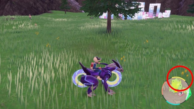 We need a wild Smeargle to make this work, and you want to lead it to the flower I’ve circled in the picture above. This flower serves as a marker, as you must be a specific distance from the nearby tree. This glitch doesn’t have a 100% success rate, but here’s how it works: