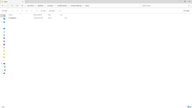 - Open the Content Warning folder and then the Saves folder. You should see a file here that you must open with Notepad.