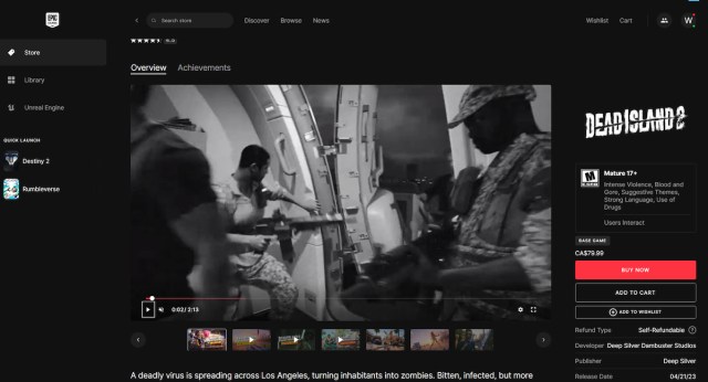 Since Dead Island 2 is new, it’ll appear on the home screen of the storefront. Press it and it’ll take you to its page. From there, press the bright red Buy Now button and wait for the download to complete.