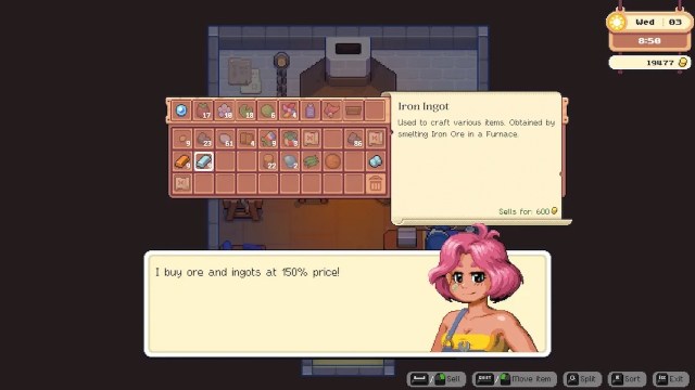 Now what about Ingots? Well, don’t sell them through the sell crate. Sell your Ingots to Ferra at the Smithy, since she buys them for 150% of what they’re worth. You’ll find tons of copper and iron throughout the islands, which you can turn into Ingots using a Furnace. They sell for quite a bit if you bring them to Ferra. Just make sure to not sell all of them, as you need Ingots for crafting items and upgrading tools.