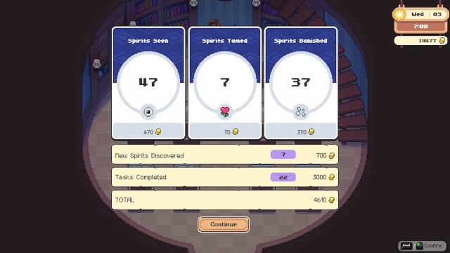 This was after only having played two in-game weeks and finally discovering that Spirit Research makes bank. Take a trip to the Science Center every few days after you’ve tamed, fought, or hatched new Spirits.