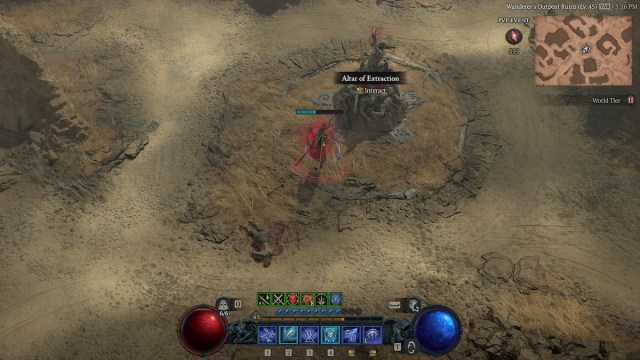 In town, there are plenty of cosmetics and rewards to buy with something called Red Dust. But how do you convert Shards of Hatred to Red Dust? Do you see those Alters of Extraction around the Fields of Hatred? Once you collect some Shards of Hatred, you can convert them into Red Dust by interacting with these Alters of Extraction. Then, for a short amount of time, it thrusts you into a PvE battle against hoards of enemies.